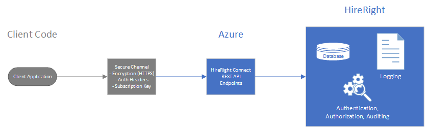 Client Code: Calls the HireRight Connect REST API endpoints on Azure over a secure channel